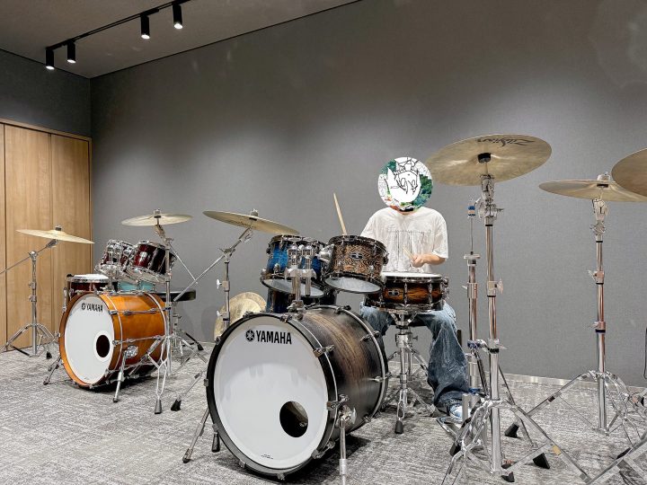 They also visited soundproof rooms prepared for various instruments. In the drum room, Inoutsuha SA had a go at playing real drums. Everyone seemed to discover something new in the sounds of real drums, which are different from plug-ins.