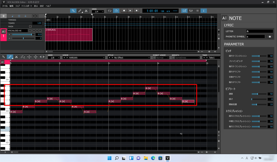 歌詞は1文字ずつ入力することもできます。1文字ずつ入力したい場合は、入力したい音を選択して、歌詞の部分をダブルクリックしましょう。ウインドウが開きますので、1文字ずつ歌詞を入力してください。